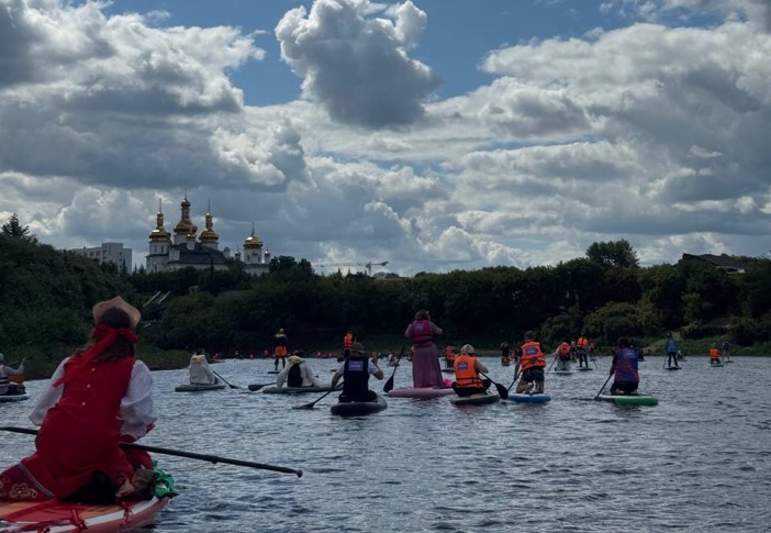 В Тюмени прошел первый водный фестиваль-карнавал «72 Сап Фест». Жители города проплыли на сапбордах по Туре от Заречного парка до «Конторы пароходства».