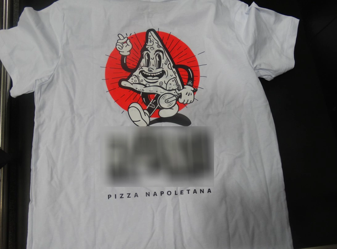 Слоганы на одежде совпадают с теми, что использует международная сеть пиццерий Roni Pizza Napolitana