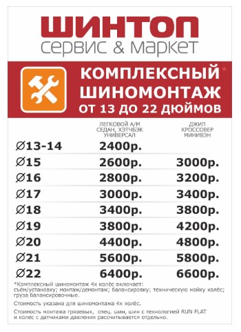 В сервисе «Шинтоп» шиномонтаж для малолитражек R13-14 за год подорожал на 400 руб. — до 2,4 тыс. руб.