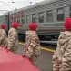 Мобилизованных тюменцев, проходивших военную подготовку перед отправкой на СВО, провожают с железнодорожного вокзала родственники и представители власти.